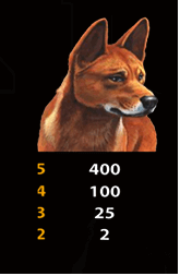 | Dingo | Dingo representations present a mid-level payout amount. | – | 2 | 25 | 100 | 400 |